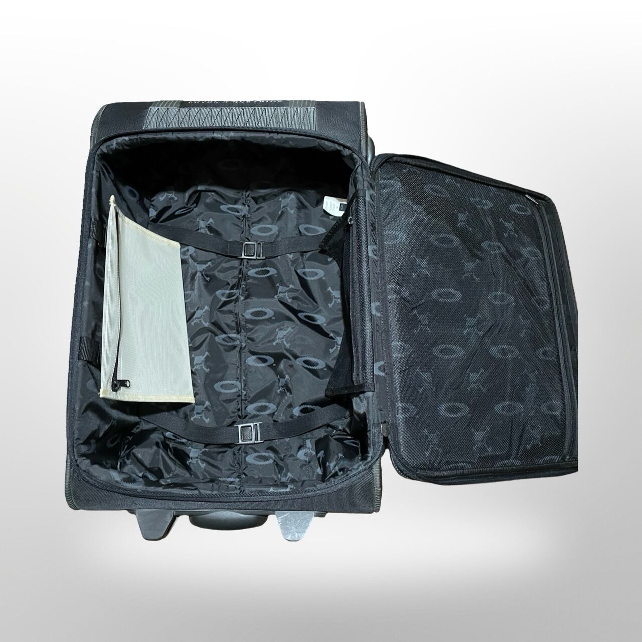 ・内装は総柄ロゴデザインで収納ベルト付き