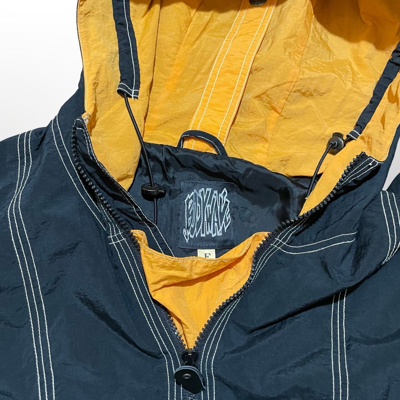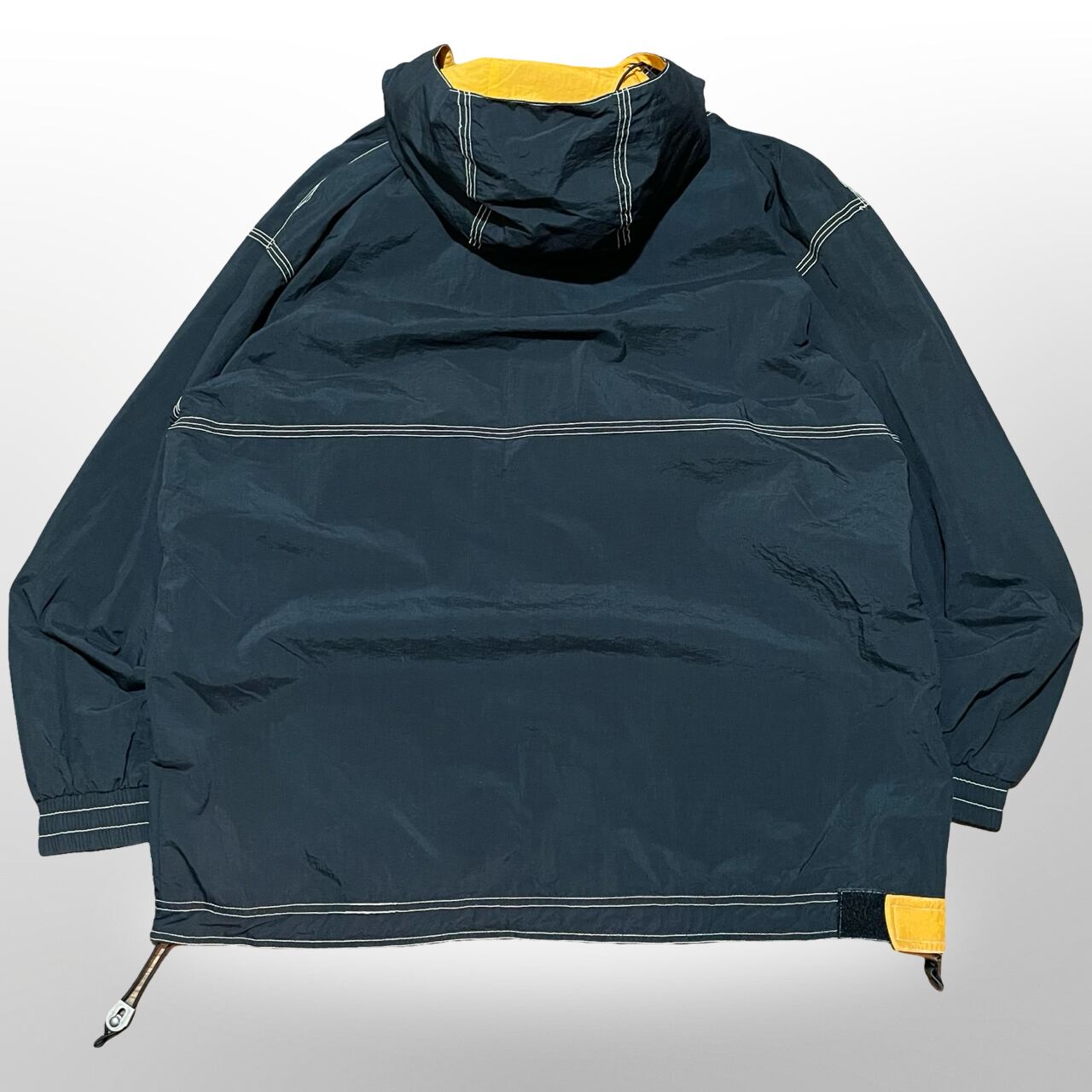 ネイビー×マスタードの配色が抜群で、ロゴ刺繍や太めのステッチラインなど、当時のHIPHOPカルチャーを感じさせるディテールが魅力的な一着。