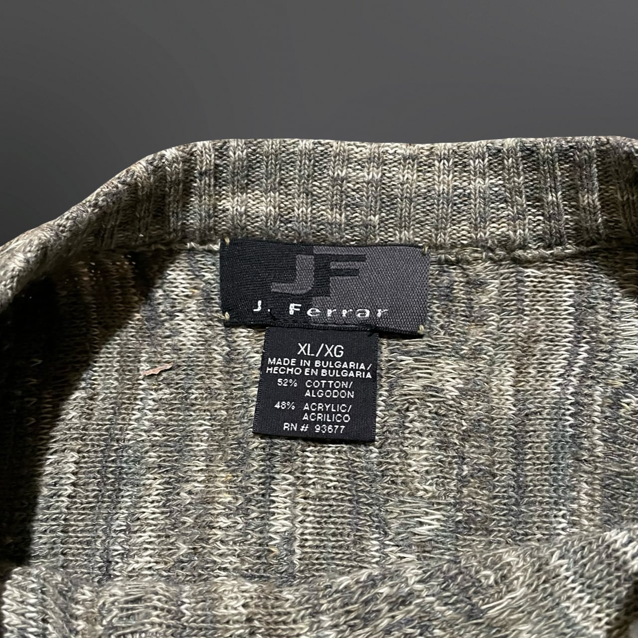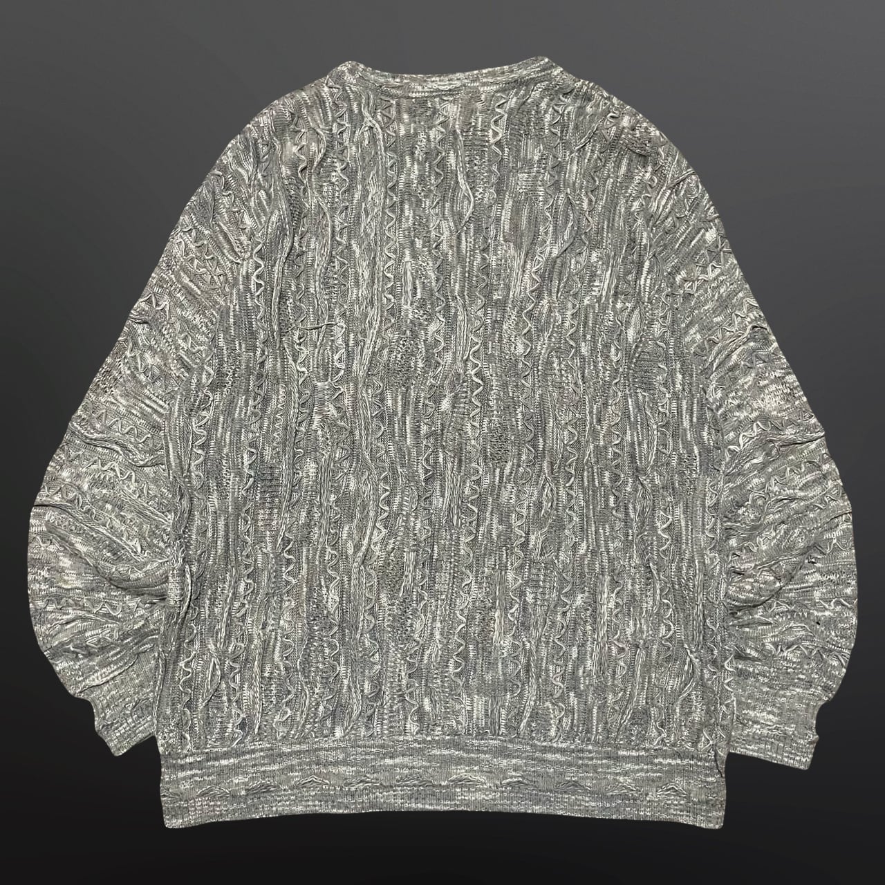 グレー系の深みある編み模様が特徴で、古着らしい雰囲気をしっかり楽しめる一着です。