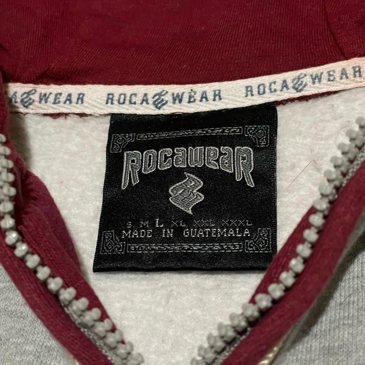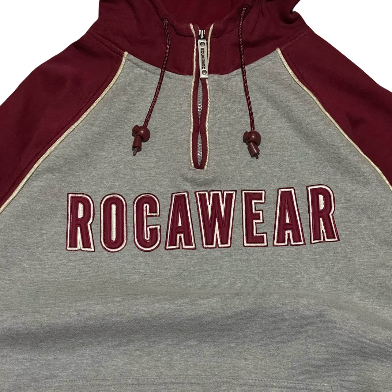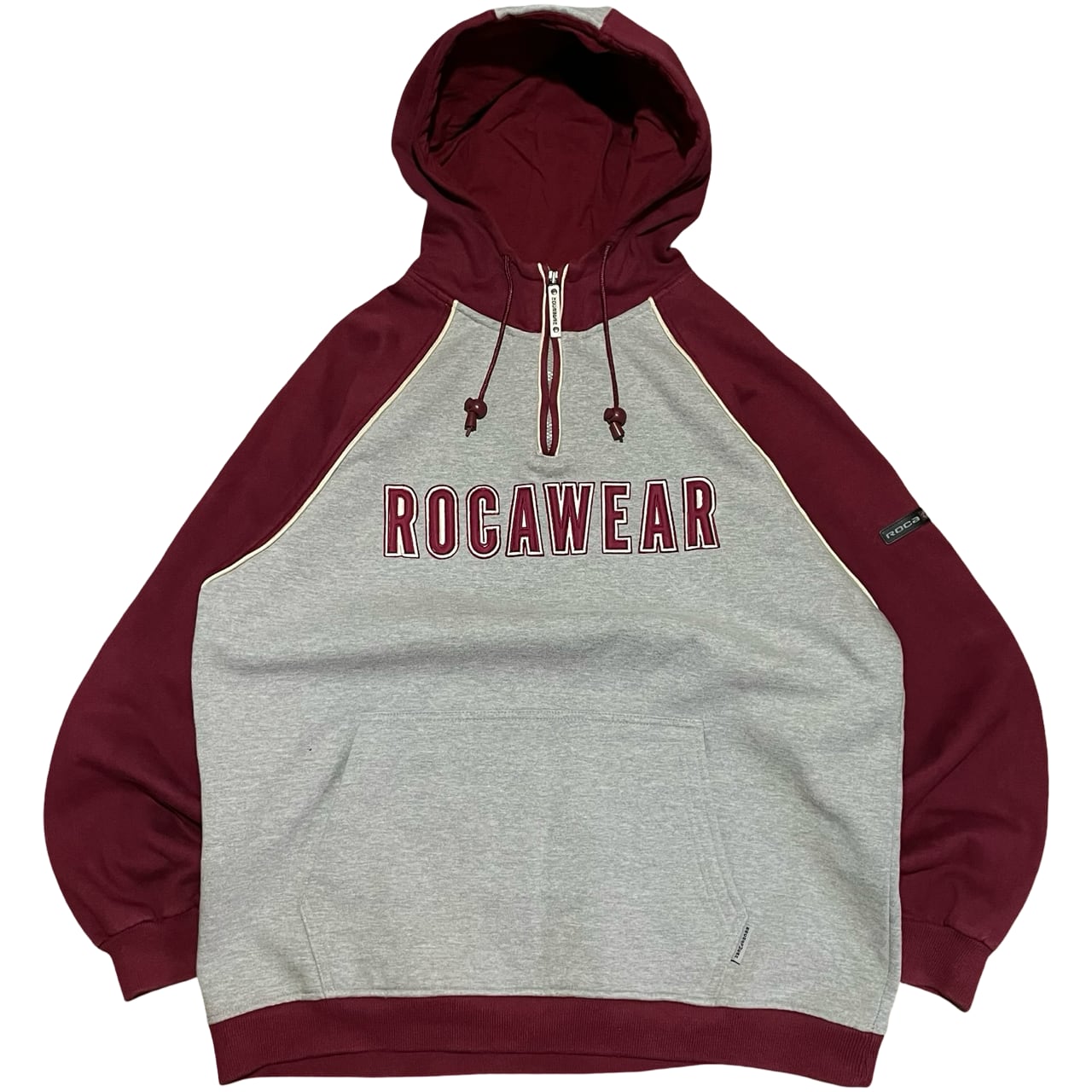 ROCAWEAR ロカウェア ハーフジップ パーカー フーディ グレー×ボルドー HIPHOP 00s