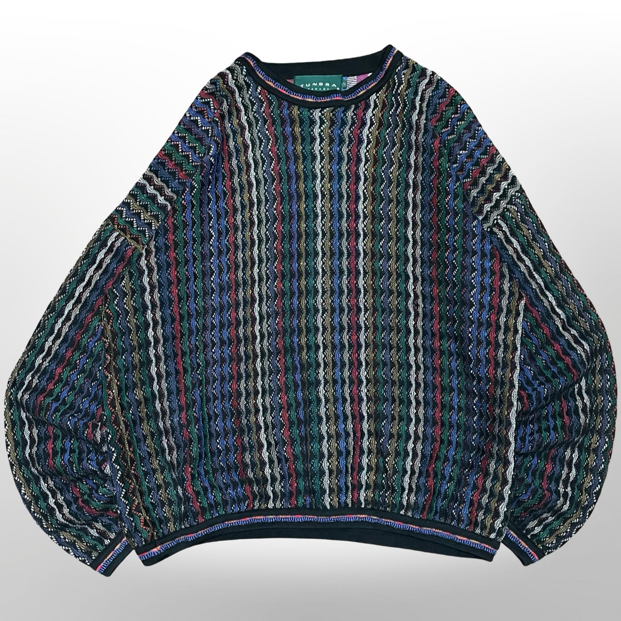 多色使いのウェーブパターンが特徴で、90sストリート感のある存在感抜群の一着です。
